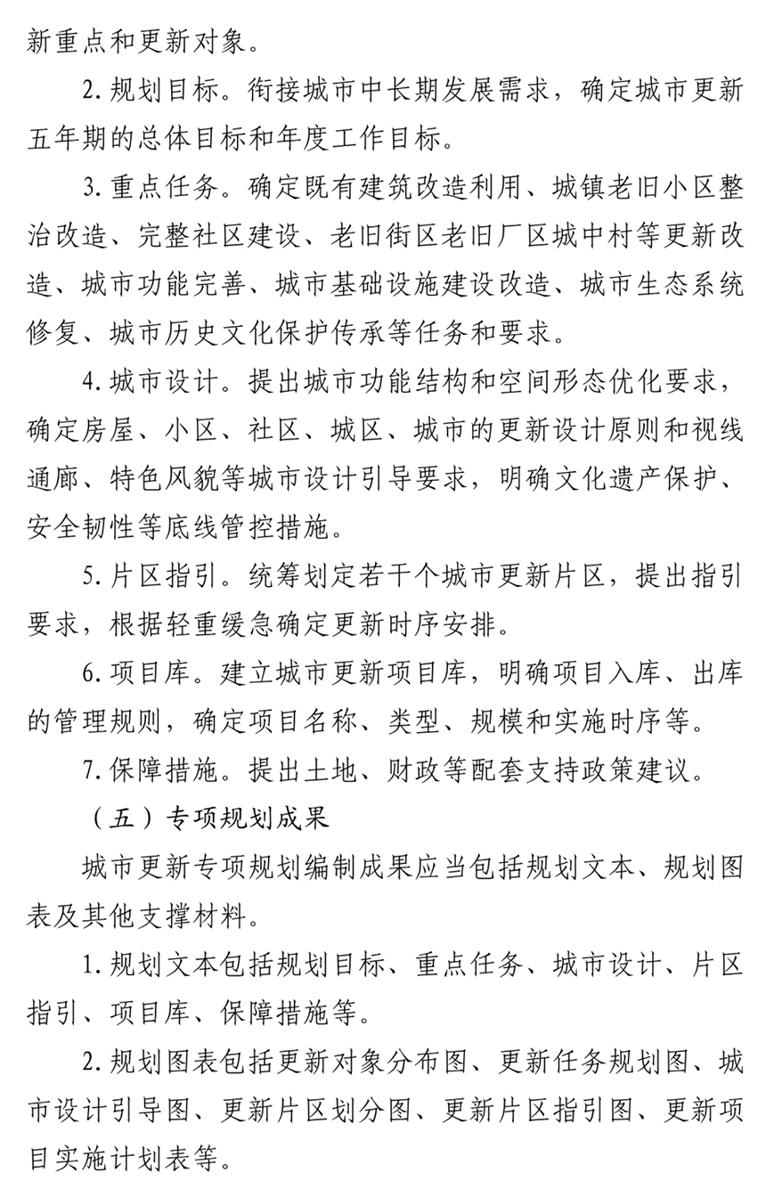 為深入貫徹中央城市工作會議精神,落實《中共中央辦公廳、國務院辦公廳關于持續(xù)推進城市更新行動的意見》,指導各地制定實施城市更新專項規(guī)劃,建立完善“專項規(guī)劃—片區(qū)策劃—項目實施方案”的規(guī)劃實施體系,住房城鄉(xiāng)建設部組織編制了《城市更新規(guī)劃編制導則》,要求結合實際做好城市更新規(guī)劃編制實施工作。