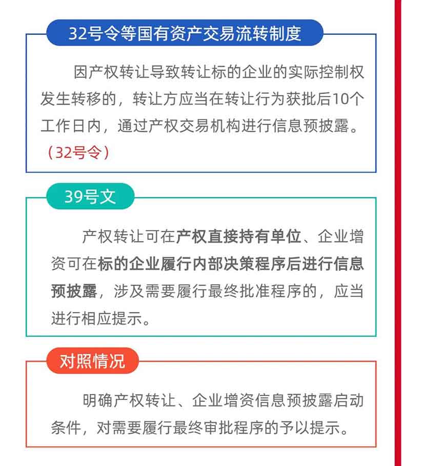 二是明確產(chǎn)權(quán)轉(zhuǎn)讓可在產(chǎn)權(quán)直接持有單位、企業(yè)增資可在標的企業(yè)履行內(nèi)部決策程序后,進行信息預披露,對需要履行最終審批程序的予以提示;