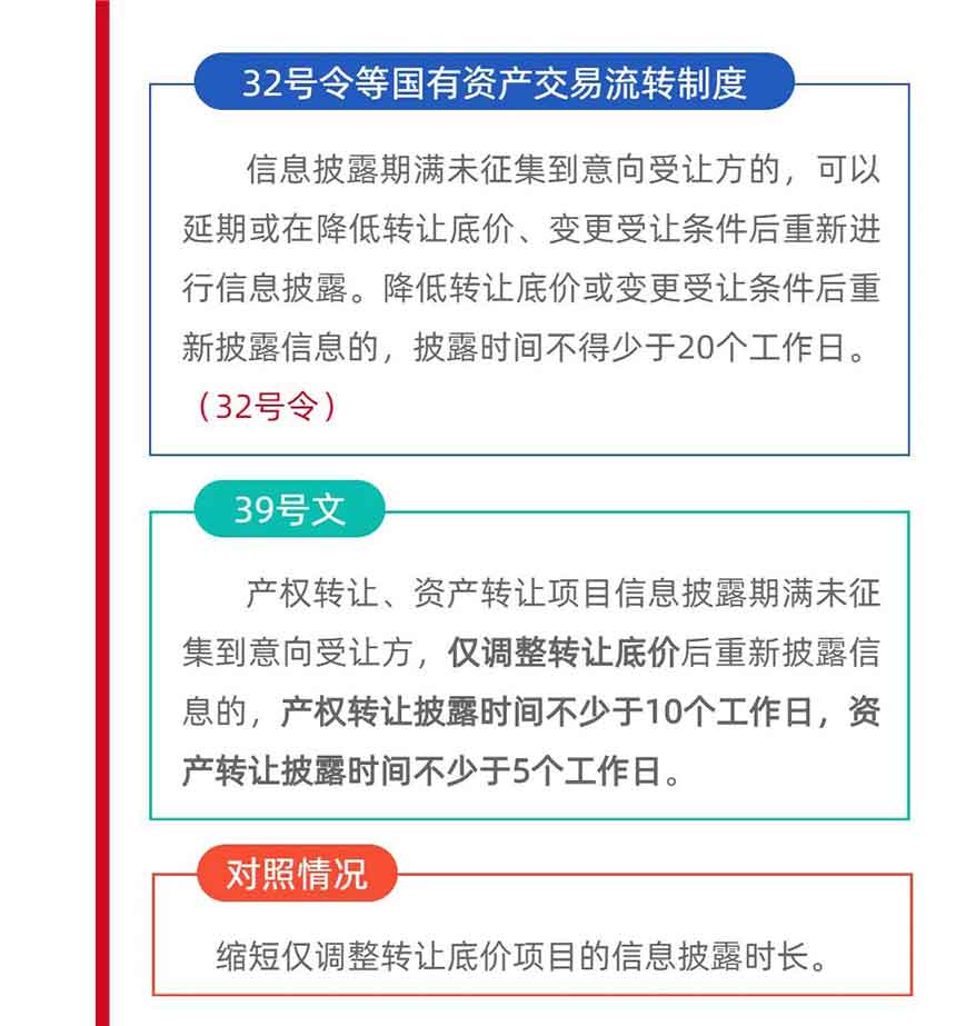 三是對于僅調(diào)整轉(zhuǎn)讓底價的項目,縮短重新信息披露時長;四是強調(diào)交易流轉(zhuǎn)環(huán)節(jié)對無形資產(chǎn)的管理要求,并明確相關(guān)要求應在信息披露和交易合同中予以體現(xiàn)。
